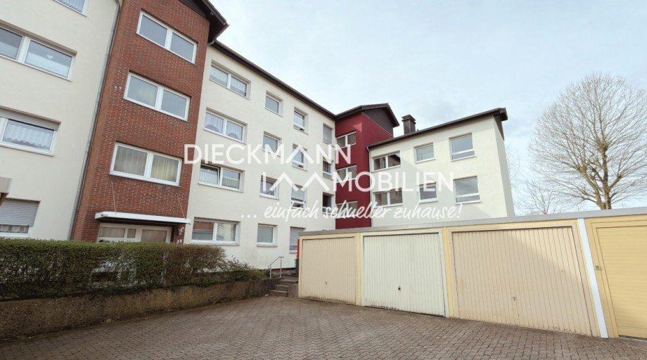 Auch für Komfort und die Zukunft des Hauses ist gesorgt: Eine eigene Garage mit elektrischem Rolltor gehört ebenso dazu wie die bereits durch die Verwaltung angestoßene Planung für neue Fenster und die Balkonsanierung.