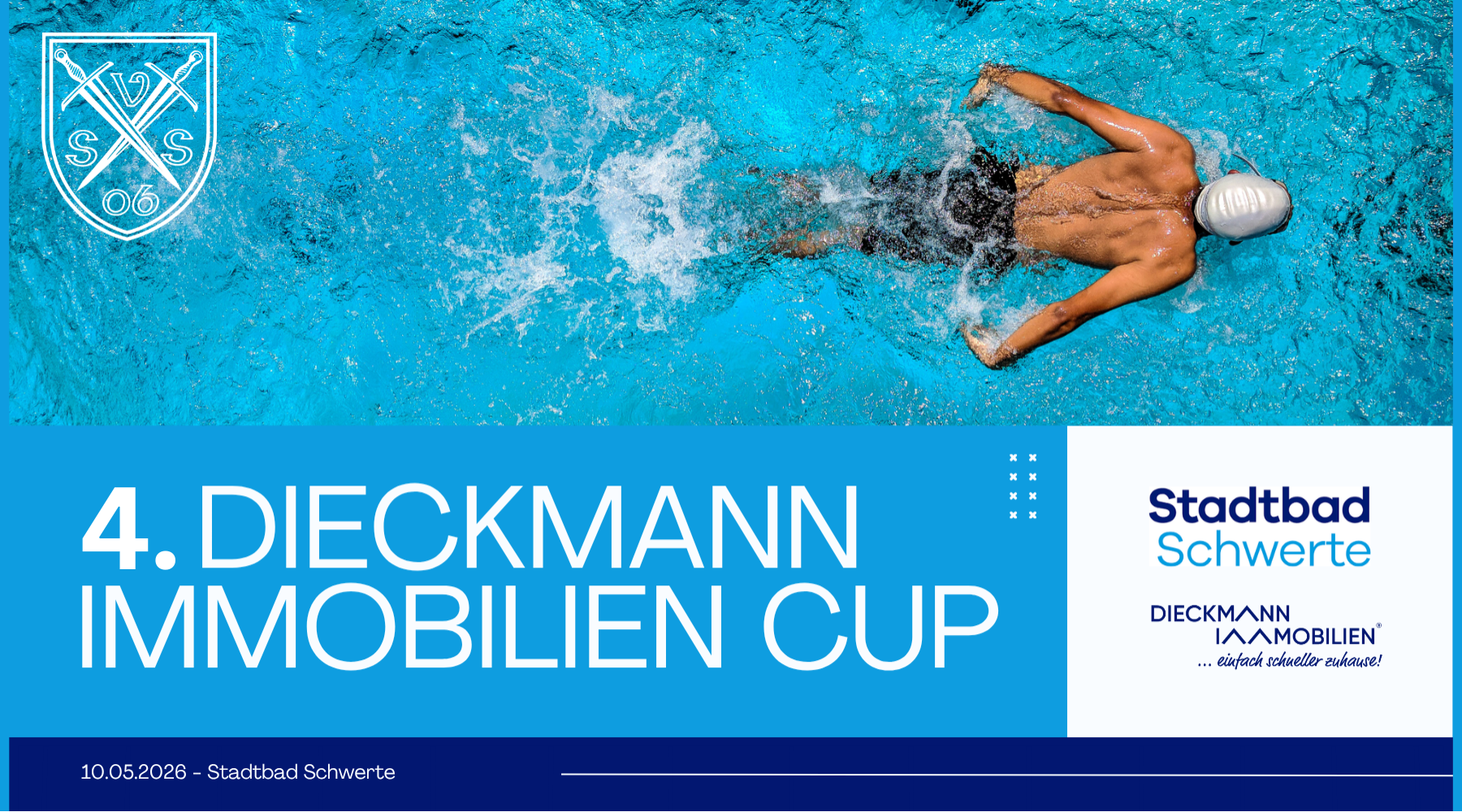 Bereits seit sieben Jahren ziert das Logo der Dieckmann Immobilien GmbH die Wettkampfshirts des Vereins. Für uns ist dieses Engagement weit mehr als ein klassisches Sponsoring - es ist eine echte Partnerschaft, die von Vertrauen, regionaler Verbundenheit und gemeinsamen Zielen geprägt ist. Ein besonderes Ergebnis dieser Zusammenarbeit ist die mittlerweile etablierte Durchführung des 4. Dieckmann Immobilien Cups, der ebenfalls am 10. Mai 2026 im Stadtbad Schwerte stattfindet.